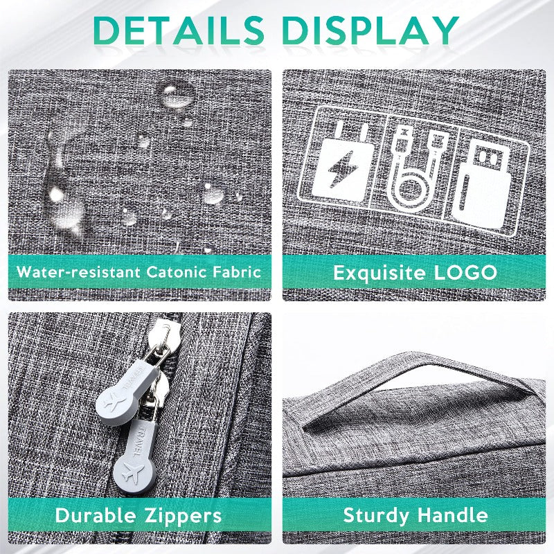 PREMIUM QUALITY: This travel, cable organizer is made of waterproof cationic 300D fabric and thick padded inner material. Newly improved double zippers with plain design are smoother and more durable. Superior & neat stitching makes the electronic organizer case exquisite and unique!